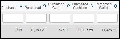 - Purchased Cashless: This is the amount of any transactions that were made by cashless pay.