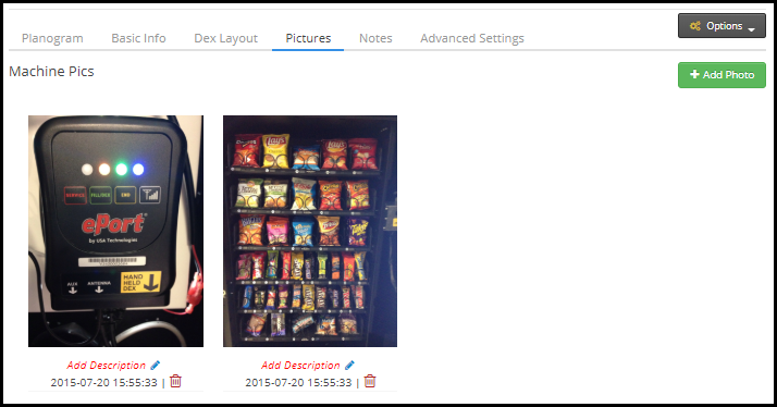 Ver, agregar o eliminar fotos de la máquina desde la pestaña Imágenes.
