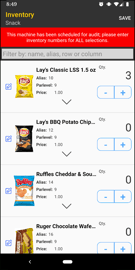 Clicking the Inventory button will prompt the driver to enter final product quantities for every selection in the machine.