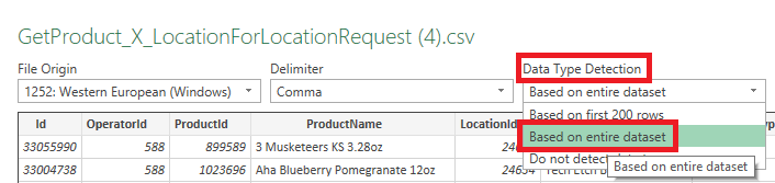 - Select Data Type Detection dropdown and select Based on entire dataset.