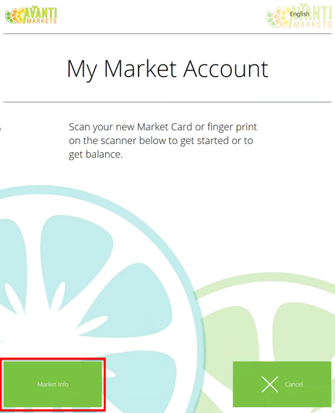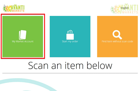 At the kiosk, select “My Market Account” from the main kiosk screen