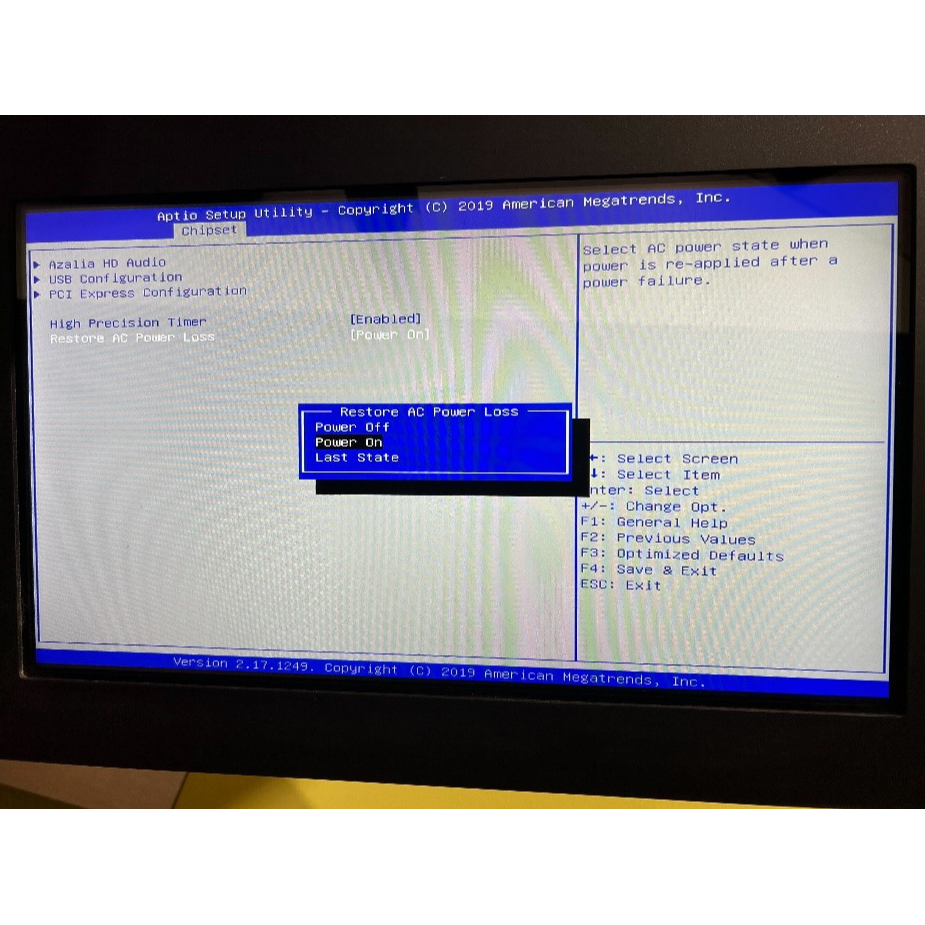 Entailed in this article are the steps necessary for configuring the AC Power Loss settings on a Premio CPU, which is one of several types of CPU found in Parlevel kiosks. The AC Power Loss settings are typically enabled when kiosks have been found to not boot up again automatically after a power loss.