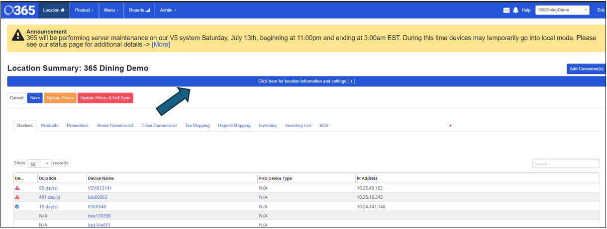 - Expand the Location Summary by clicking the blue bar labeled Click here for location information and settings (+).