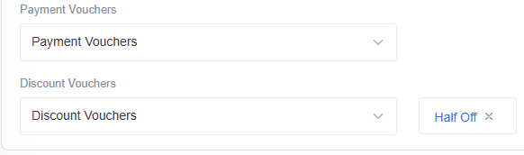 - On the Payments tab, scroll to the Discount Vouchers or Payment Vouchers dropdown at the bottom, and select the desired discount.