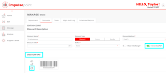 Generate UPC is available for Discounts to allow a discount to be applied at the Kiosk