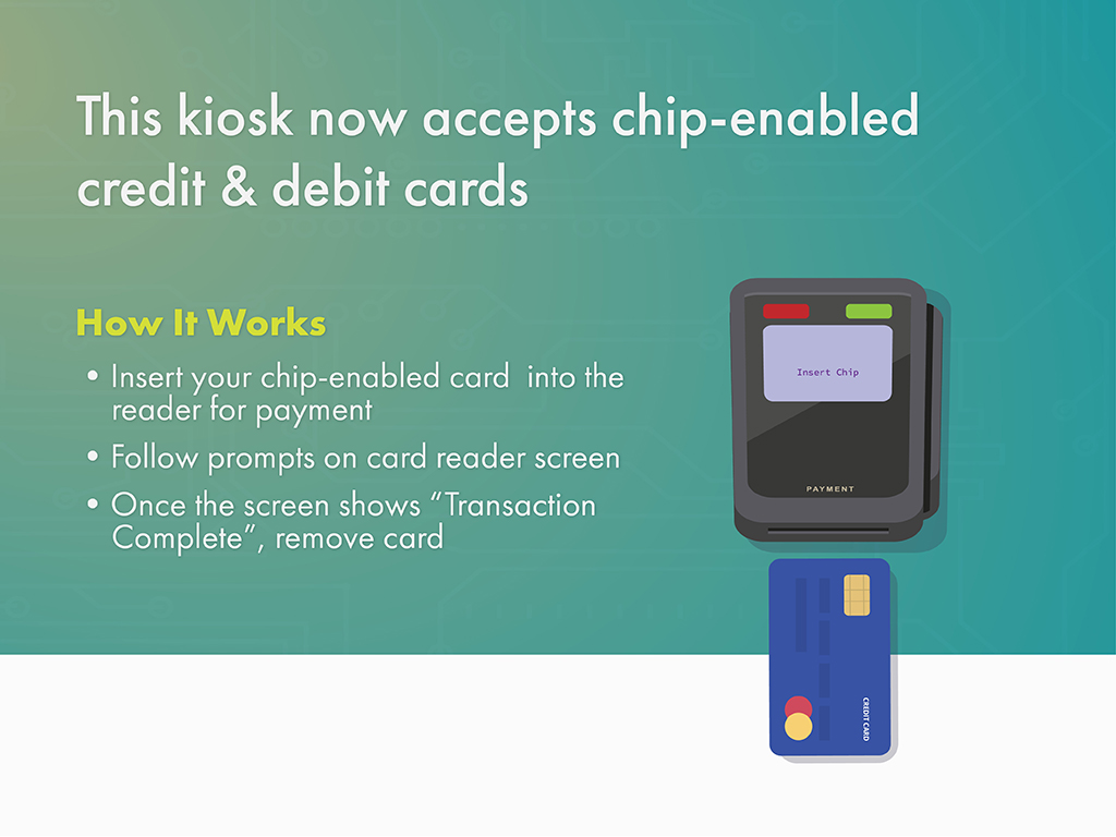 Download the attached files to create Point of Sale announcements introducing EMV capabilities at the kiosk.