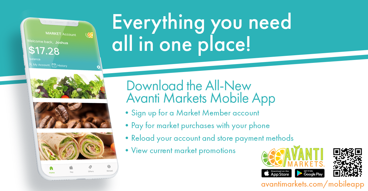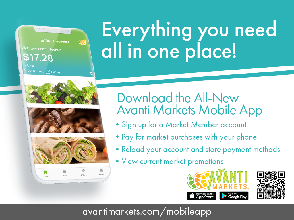 As you know, we partner with Avanti Markets to provide the micro market services at your location. In partnership with Avanti we have just announced the launch of the new Avanti Markets mobile app!